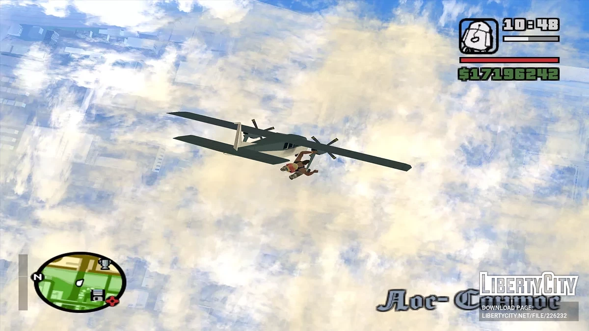 Скрипт добавляет разбившийся самолёт Rockstar на пляж рядом с горой Chiliad. В самолёт можно войти. Скрипт работоспособен в SAMP.