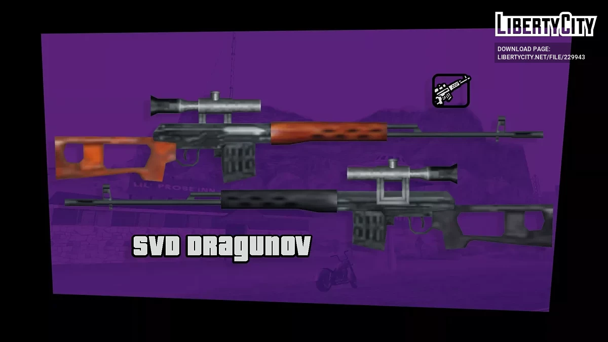 Знаменитую снайперскую винтовку Драгунова завезли непосредственно на черный рынок Сан-Андреаса. Теперь каждый желающий может отведать настоящего советского качества, были бы деньги! Особенности: - модель превосходно вписывается в атмосферу игры (ст...