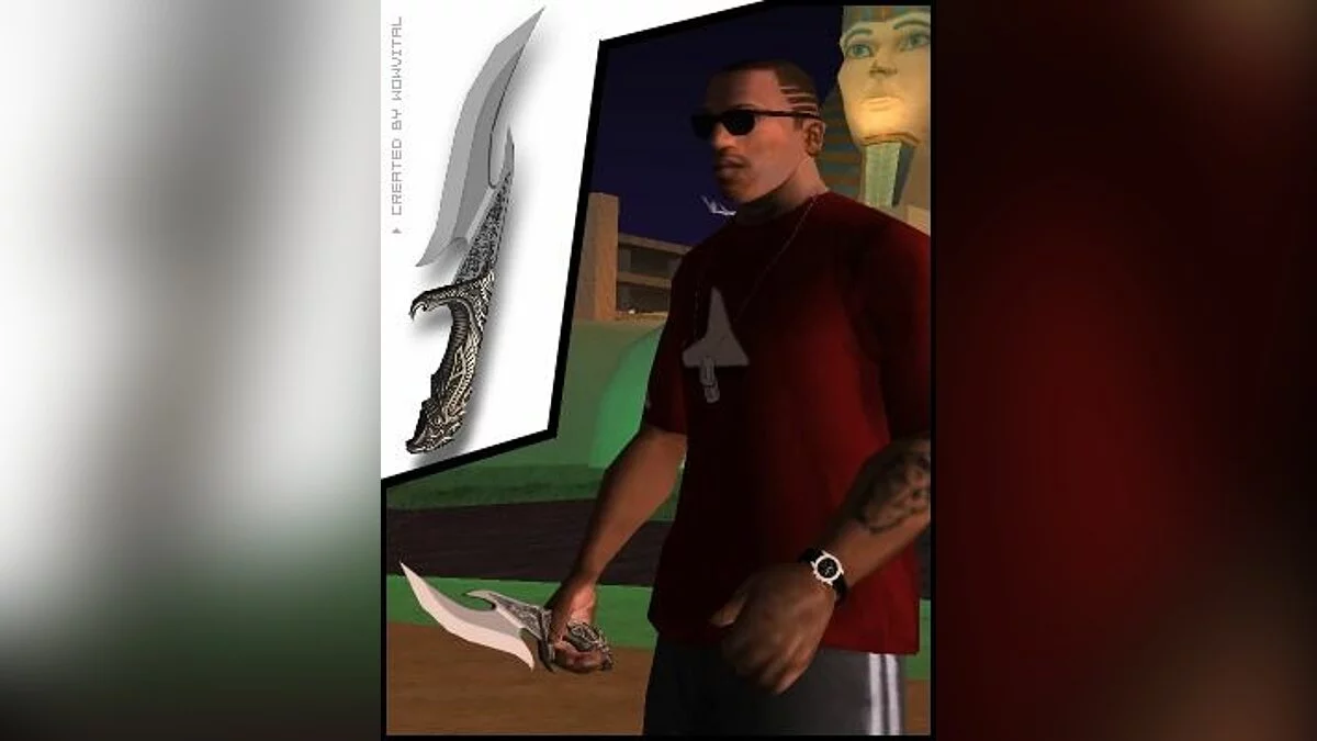 Продолжаю делать модели на основе Google картинок, на этот раз вот такой необычный нож Инферно, выглядит в точности как на картинке. Качество моделей и текстур — хорошее. Чтобы у CJ'я в руке появился этот нож, нажмите "F6", чтобы он исчез, нажмите...