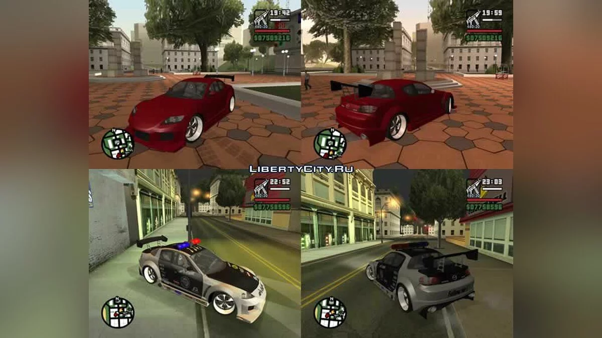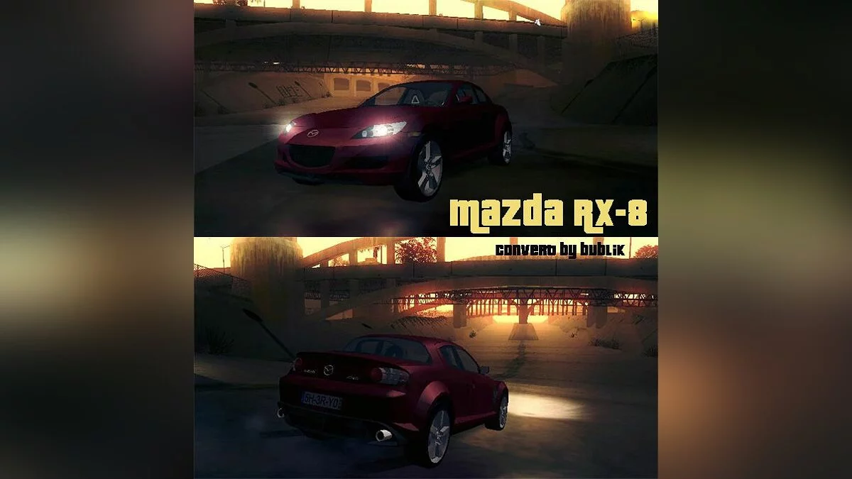 Mazda RX-8 для GTA San Andreas. Особенности: - Модель среднего качества. - Своя тень. - Имеются повреждения. - Настроенная коллизия. Приятной Игры!