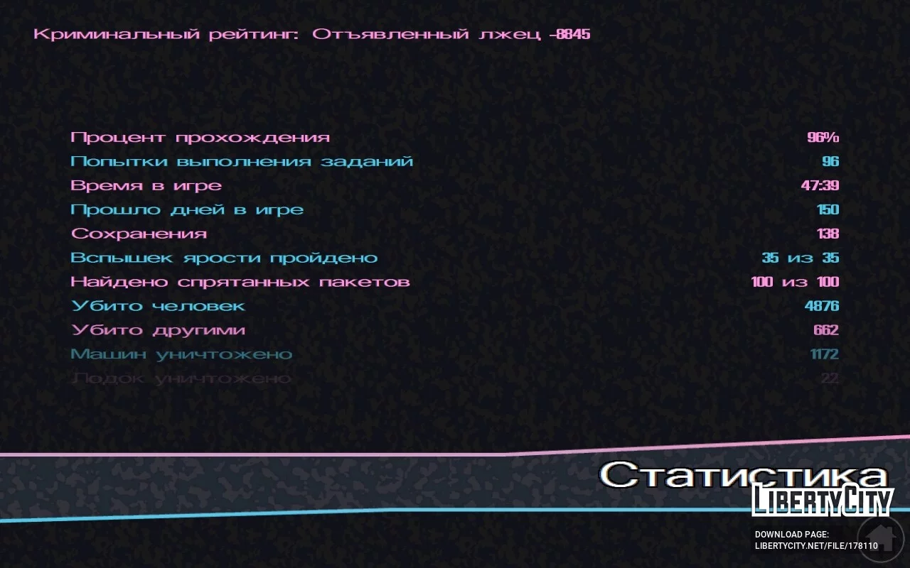 Всех глубоко приветствую! Сегодня я бы хотел предоставить вашему вниманию моё 100 процентное сохранение, которое было сделано без читов и модов! Что было сделано: 1) Игра пройдена на 100 процентов; 2) У Томми бесконечные патроны; 3) У Аэропорта при...