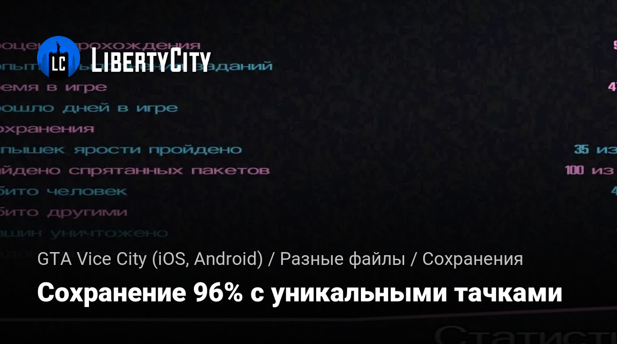100% Save для GTA Vice City Android. Статистика: - Пройдены все сюжетные и дополнительные миссии; - Куплена вся недвижимость; - Бесконечные патроны ко всем видам оружия; - 200 единиц здоровья и брони; - У игрока на счету 999999999$; Приятной и...