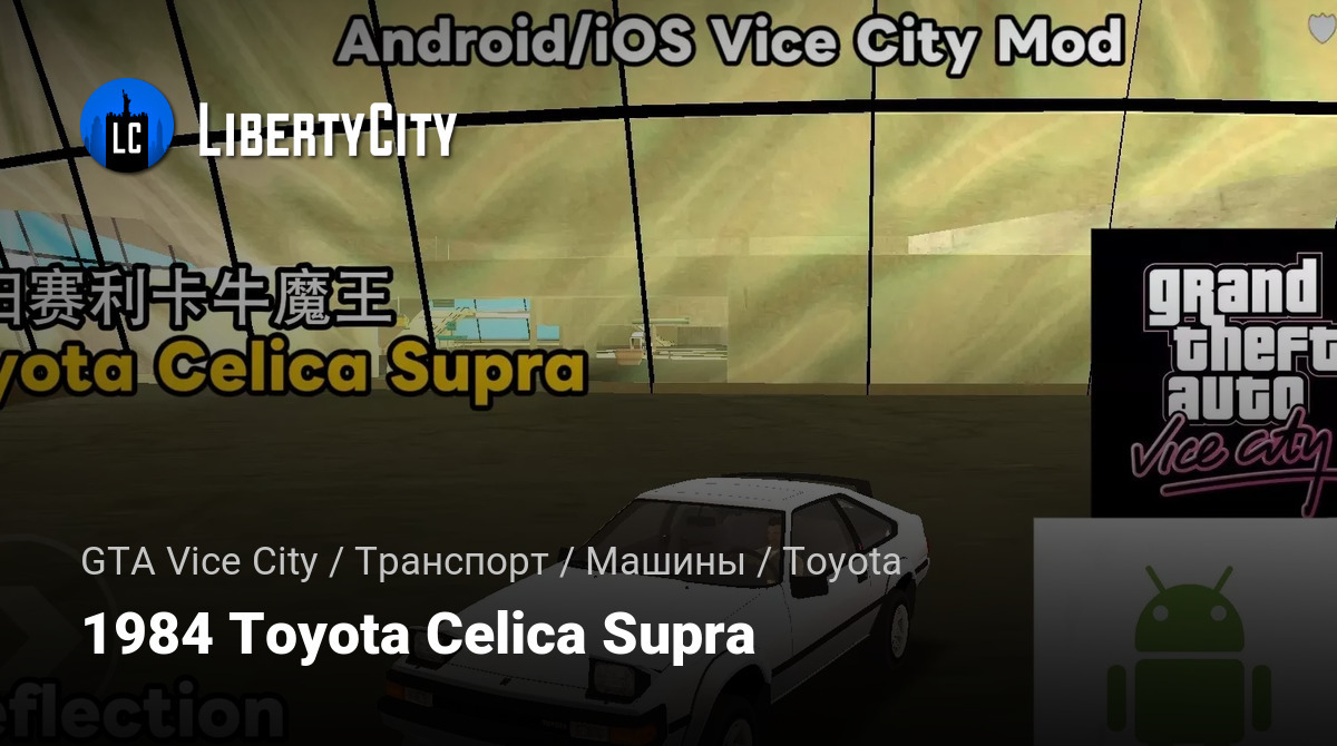 Эта модификация добавляет в GTA Vice City автомобиль, основанный на Toyota Celica (1977-1981 гг.) — модели, которая считается родоначальницей легендарной линейки Toyota Supra. Это высокопроизводительный спортивный автомобиль 80-х с классическим дизайном.