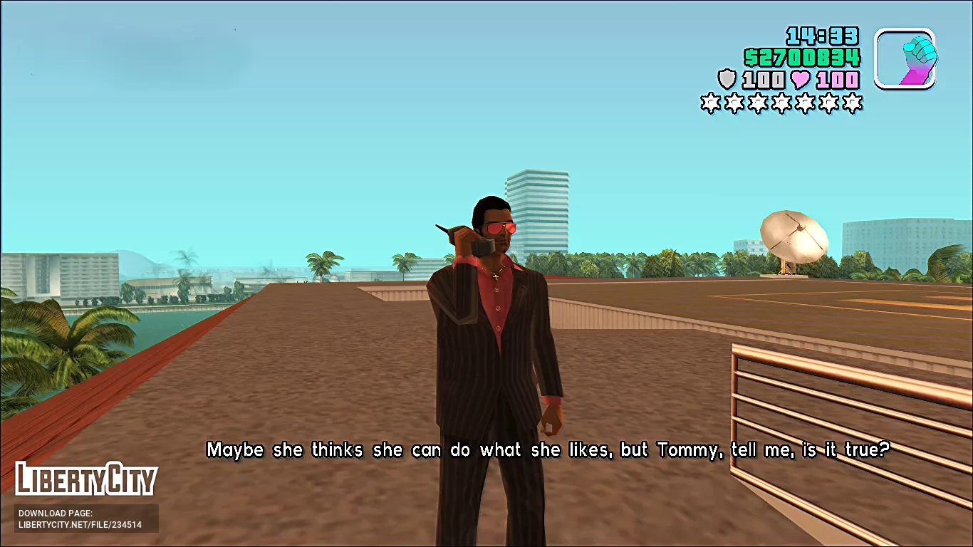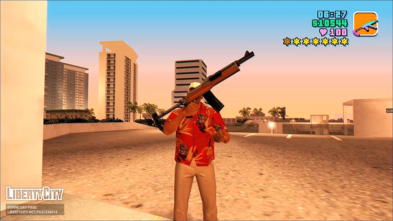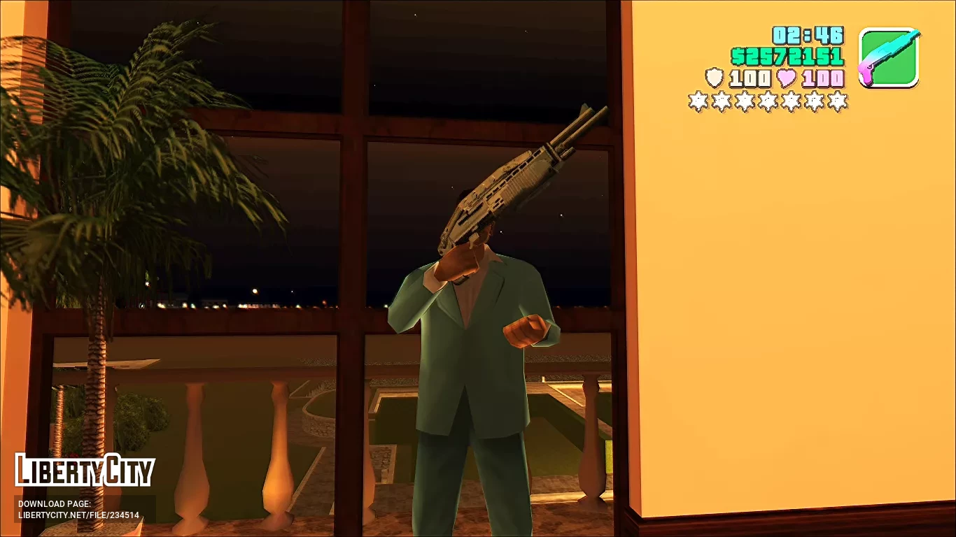 - Улучшенные модели и текстуры всего стандартного арсенала Vice City.
