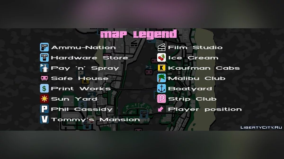 Оригинальные текстуры карты в меню и на радаре в HQ качестве. Тут объединены два мода от разных авторов, которые вместе образуют полную замену карты на высококачественную её версию. "Vice City HQ Pause Map" от gooddoctor и часть из пака т...