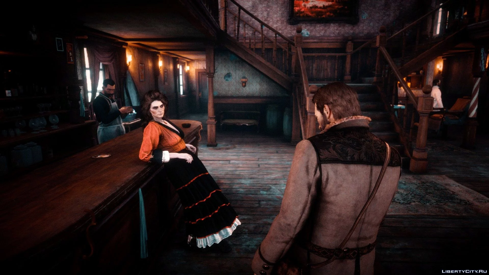 Модификация для Red Dead Redemption 2 добавляет в игру возможность заниматься сексом с девушками в местных салунах. Мод реализован на подобии мода "Горячий Кофе" в Grand Theft Auto San Andreas и реализован в Valentine Saloon, Saint Denis Saloon и Strawberry Hotel/Welcome Center.