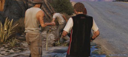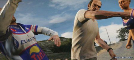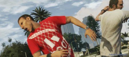 В трейлере Тревор очень много дерется. Жертвы отлетают в сторону, а мы имеем возможность рассмотреть детали.