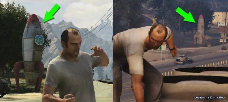 После поворота камеры мы видим сзади декоративную (?) ракету, которая уже мелькала во втором трейлере GTA 5: