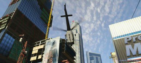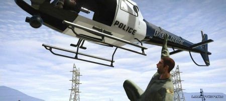 Это тоже полицейский вертолет, но его днище выглядит иначе. Возможно, и для создания трейлера о Треворе были использованы разные билды GTA 5. На последнем скриншоте вертолет выглядит незаконченным. Кроме того, можно заметить, что у него совершенно не крутится задний винт, а это уже серьезная недоработка.