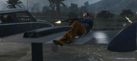 В другой сцене Тревор отстреливается на крыле самолета. Эта анимация явно позаимствована из Max Payne 3: