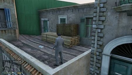 Отправляйтесь в район Каналов Веспуччи. Видите эту симпатичную вывеску на крыше магазина? Поднимитесь по лестнице позади здания и возьмите очередную запчасть от космического корабля.