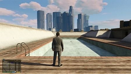 Чтобы забрать эту запчасть, вам понадобится вертолет. Летите к крыше, отмеченной на карте. Найдите пустой бассейн. Хотя с технической точки зрения он не совсем пустой, ведь в нем лежит запчасть от космического корабля.