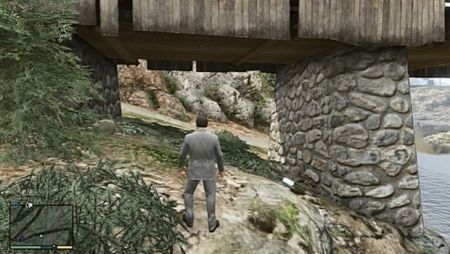 Немного к югу от того места, где лежала запчасть №17, крытый мост через реку. Осмотрите берег под ним.