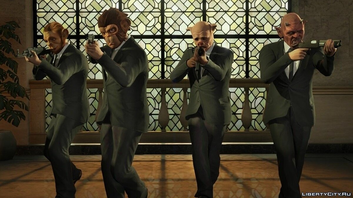Мы наблюдаем, как двое хотят «взять» заправку. «Маски на лицо», — говорит один из персонажей, и мы попадаем в меню выбора различных аксессуаров: очков, масок, шляп и так далее. Кстати, маски — это нечто большее, чем просто способ прикрыть лицо. Попробуйте выкинуть ее после дела и увидите, что будет. Вы потеряете рейтинг преступника. Один из них надевает маску гориллы и врывается в магазин. «Деньги в сумку! Это ограбление! Быстрее!», — кричит рокстаровец в микрофон. Сначала мы подумали, что крики были нацелены на то, чтобы поразить нас, но нет, оказалось, что чем грубее и громче ты требуешь денег, тем быстрее жертвы поделятся накопленным в кассовом аппарате.