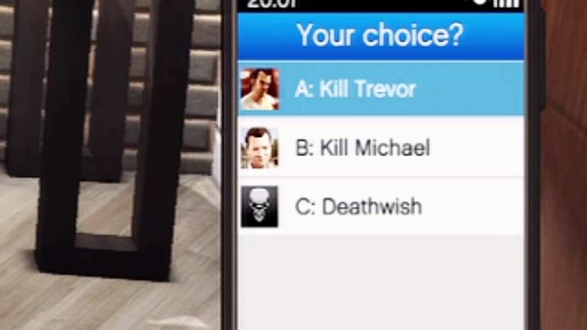 Однако, даже если мы возьмём факт развития хронологии на 4 года вперёд, по-прежнему остаётся несколько вопросов. Один из них: в конце GTA V — которая всё также в 2013 — нам нужно сделать выбор: убить Тревора, Майкла, или Дэвина Вестона. Однако, Дэвин Вестон периодически появляется в GTA Online, также как и Тревор: мы его видим в “Серия А”, его задания доступны в списке заданий знакомых, а при покупке ангара из обновления “Контрабандисты” — вышедшего, напомним, осенью 2017-го — Рон отметит, что в настоящий момент Тревор перестал общаться с Роном и “занимается йогой в Лос-Сантосе”. Это, конечно, возможно, но тогда Rockstar попросту признают две концовки с их смертями неканоничными, принимая смерть Майкла за действительность. Зачем тогда добавлять выбор концовки, если, по сути, “правильная” последовательность событий может отличаться от выбранной игроком?