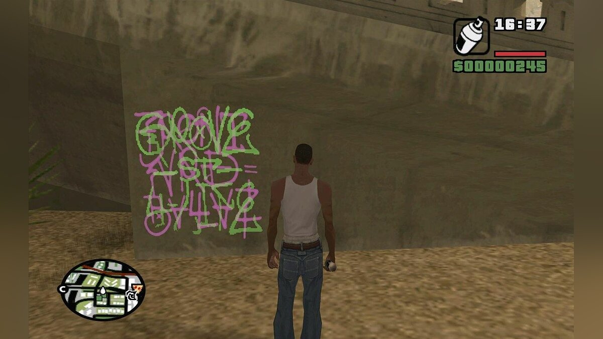 3) Так же Grove можно прочитать в граффити самОй группировки. Это не только обычные граффити когда то оставленные участниками банды на стенах города, но и подписи, которые должен наносить игрок поверх подписей представителей других банд.