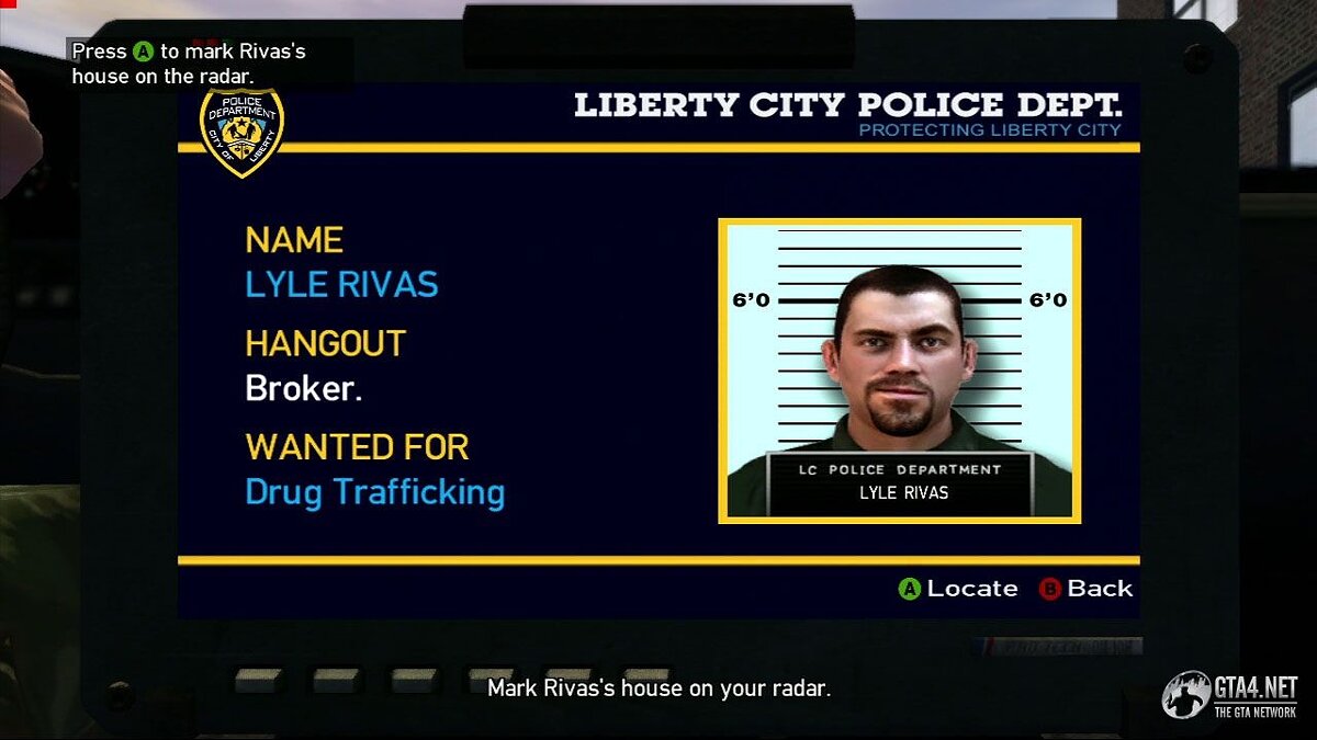 Остановите полицейскую машину и войдите в полицейский компьютер. Выберите Search Police Records, а затем Search By Name. Используйте клавиатуру, чтобы ввести имя LYLE RIVAS. Добавьте его месторасположение на радар и выйдите из компьютера.