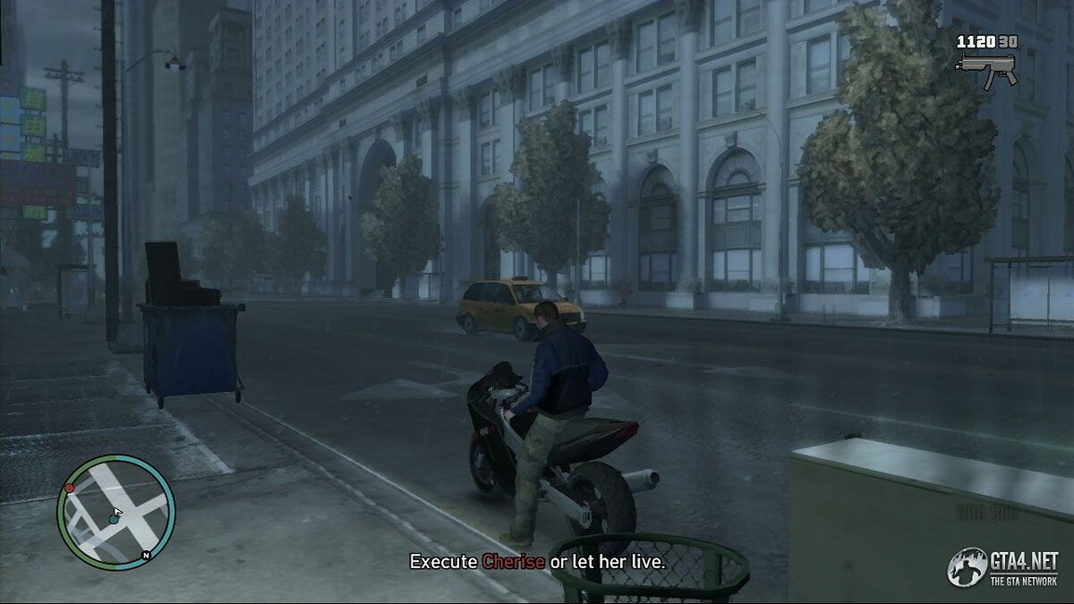 Садитесь на мотоцикл, припаркованный возле Arcade, и преследуйте Джейвона. Стреляйте в него до тех пор, как он не упадет со своего мотоцикла. Заберите деньги, которые он должен Дуэйну. Нико позвонит Дуэйну и назначит встречу в закусочной Cluckin' Bell в Algonquin.