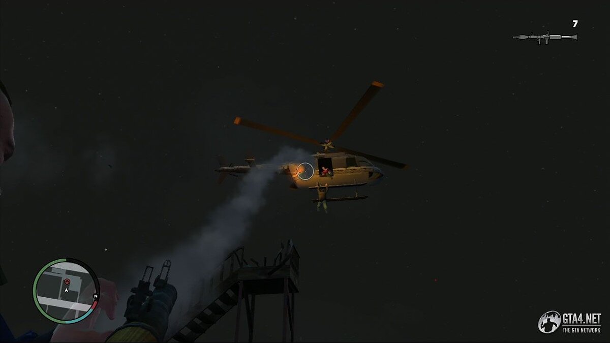 Как только вы настигнете Чарли на крыше, начнется заставка. За ним прилетит вертолет, поэтому быстро переключайтесь на RPG и стреляйте по вертолету, а затем смотрите, как он взрывается.