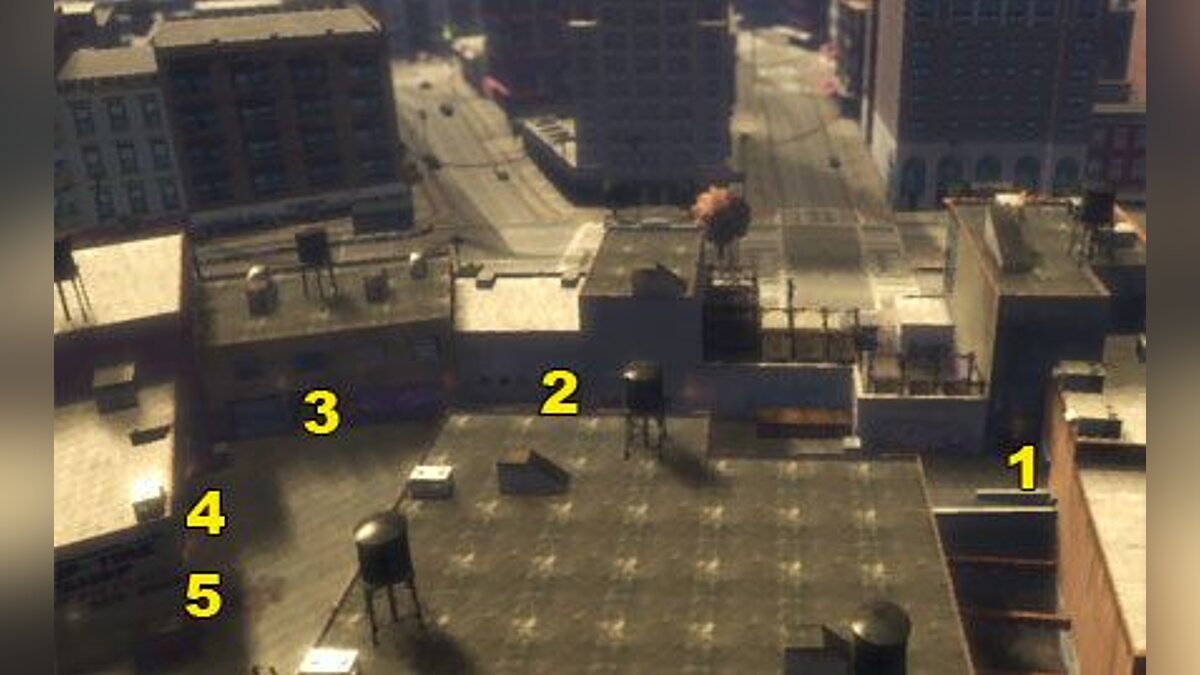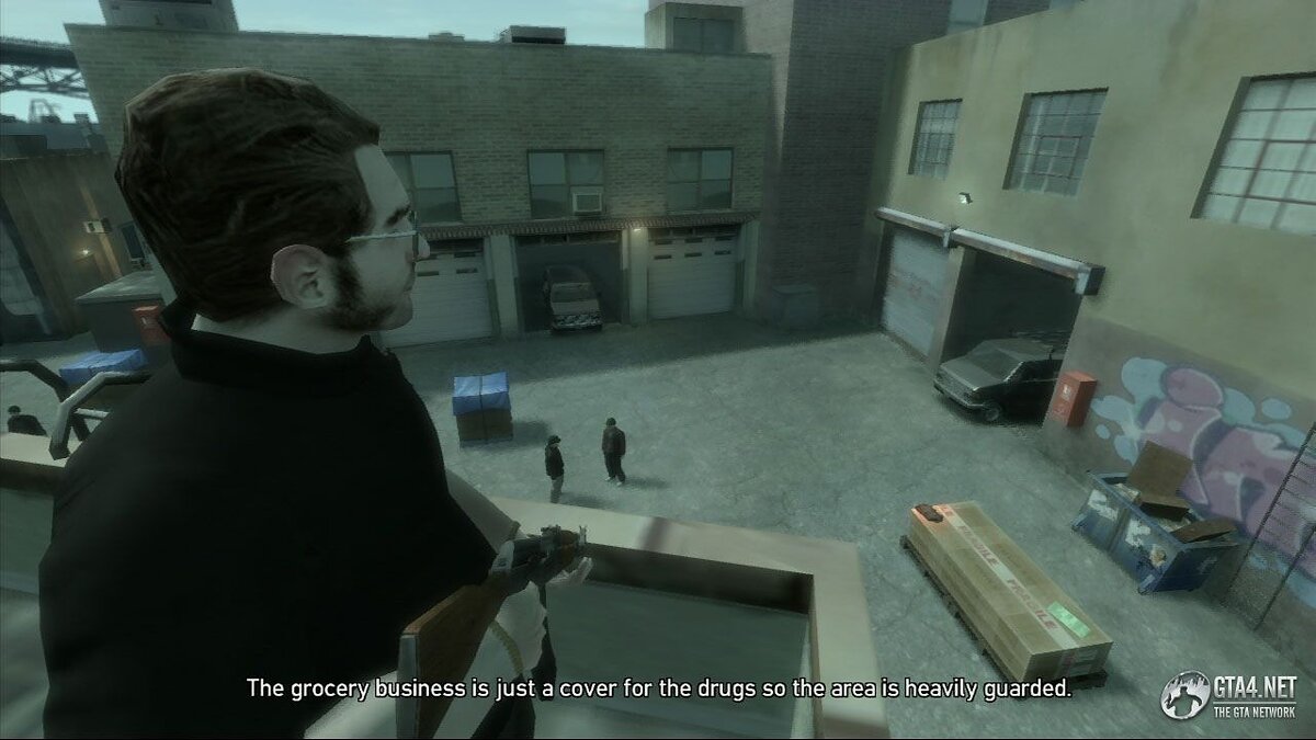 Двигайтесь дальше, взбирайтесь по лестнице и залезьте на крышу соседнего здания. Уничтожьте как можно больше людей на земле. Просто уничтожайте охранников и забудьте пока что про грузовики с наркотиками.