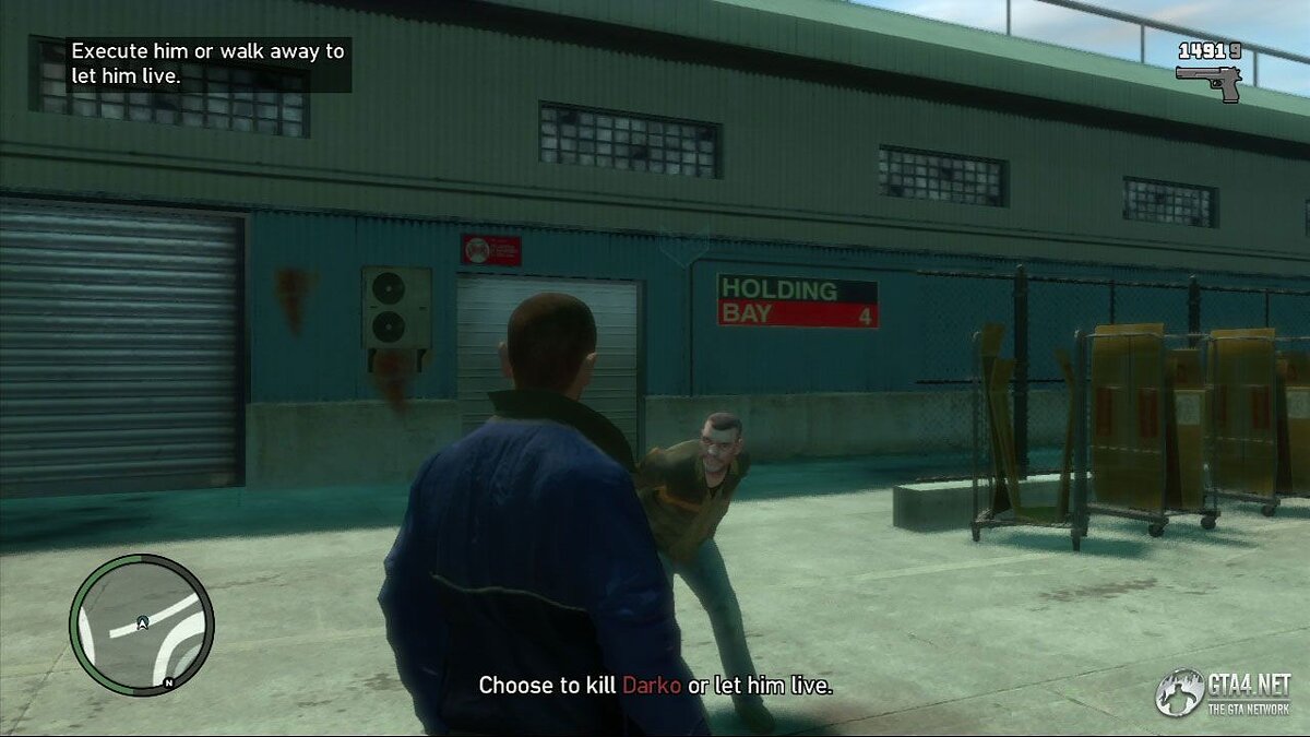 После заставки вы должны будете сделать выбор. Вы можете убить Дарков (из пистолета) или же оставить ему жизнь. Это решение почти никак не повлияет на сюжет игры. Сделайте свой выбор, а потом отвезите Романа к Брюси. После этого Нико позвонит Берни и расскажет ему что случилось.