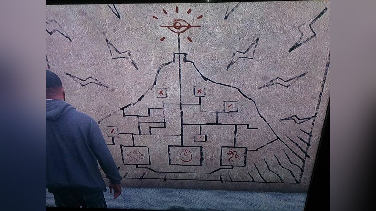 Неудивительно, что такая возможность пришлась по нраву подавляющему числу игроков, поэтому игроки постоянно задаются вопросом, как получить джетпак в GTA 5. Мнение о его существования значительно укрепило свои позиции в тот момент, когда один из владельцев игры отыскал таинственную карту на самом верху горы, которая носит название Чилиад (в оригинале — Chiliad). На ней изображена схема не то подземных проходов под самой горой, не то кусок карты игрового мира, на котором прямоугольниками отмечено местонахождение неких объектов. А вот скриншот карты: