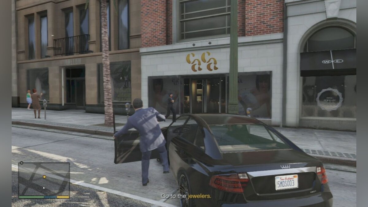 Разведка ювелирного – это миссия в GTA 5. Вам предстоит играть за Майкла. Миссия разблокируется после завершения миссии «Добавить в друзья». Майкл приезжает к ювелирному магазину вместе с Лестером, чтобы внимательнее изучить системы охраны и вентиляции, готовясь к первому крупному ограблению.