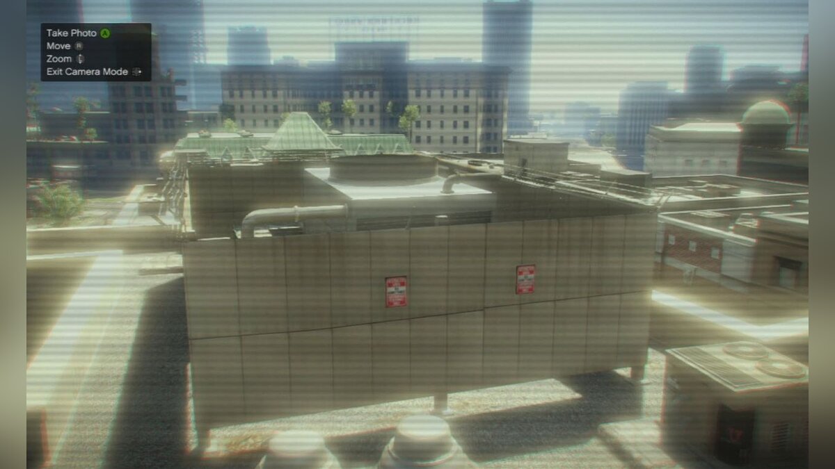 Пересеките крышу, поднявшись по лестнице слева, и подойдите к вентиляторам. Заберитесь на эту точку обзора и сделайте фотографию системы отопления, вентиляции и кондиционирования воздуха.