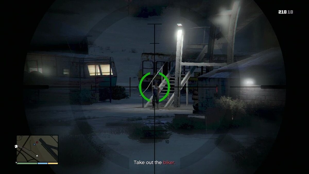 Прикрывайте приближение Рона, убивая охранников, пока он ищет местонахождение бандита. Убивайте патрулирующих охранников, на которых он указывает.
