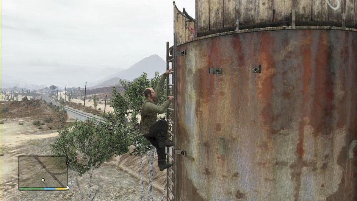 Езжайте к водонапорной башне и заберитесь на самый верх.