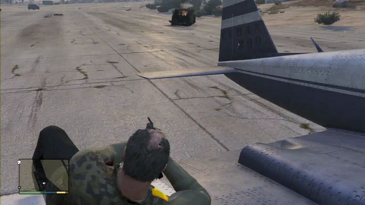 Развернитесь на крыле, чтобы уничтожить преследующие вас машины. Спрыгните с крыла и забирайтесь в самолет, стоящий в конце взлетно-посадочной полосы. Взлетайте и не забудьте убрать шасси.