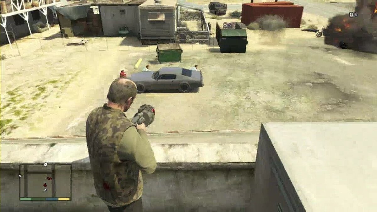 Найдите на крыше гранатомет. Воспользуйтесь им, чтобы взорвать вражеские машины.