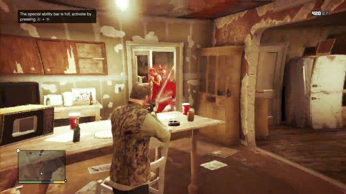 Когда снаружи не останется ни одного противника, зайдите на ферму с леовй стороны. Прячьтесь за углами и стреляйте, когда выходите из укрытия. Используйте специальную способность Тревора, чтобы очистить холл от врагов.