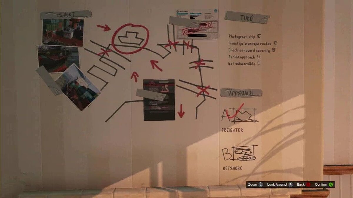 Тревор проникает в порт Лос-Сантоса в поисках товаров, которые можно украсть. Подъезжайте прямо к воротам и оставайтесь рядом со спутником, иначе вас заметят, и миссия будет провалена.