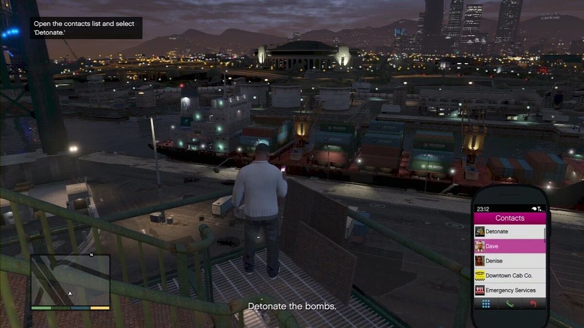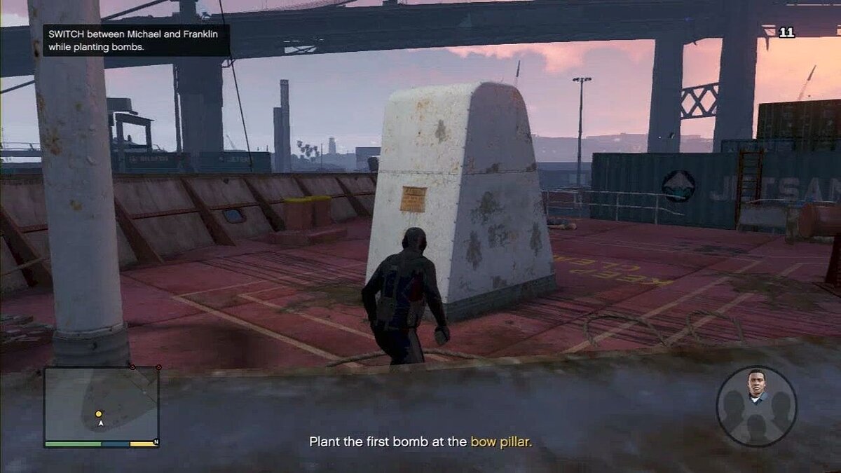 Переключитесь на Майкла и заложите первую бомбу. Как можно скорее переключитесь назад на Франклина и осмотрите область перед Майклом.