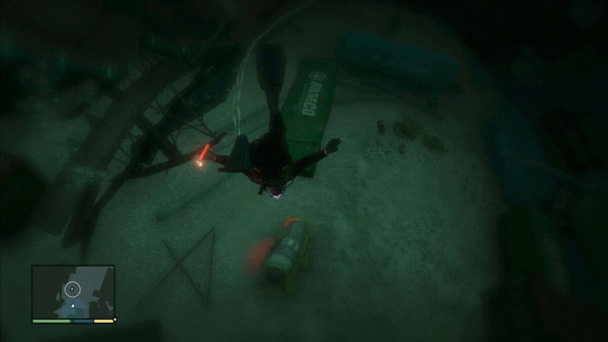Переключитесь на Тревора в подводной лодке, заберите оружие и возвращайтесь в порт.
