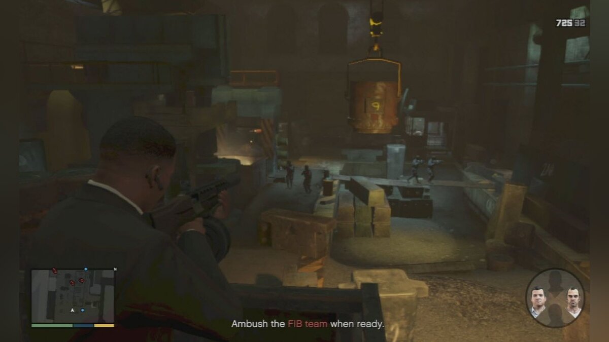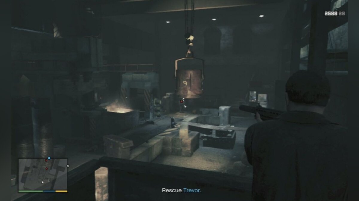 Лестер предлагает устроить засаду на литейном заводе. Там вас уже ждут Тревор и Майкл. Каждый из вас займет позицию в разных точках помещения и будет ждать армию разномастных головорезов.