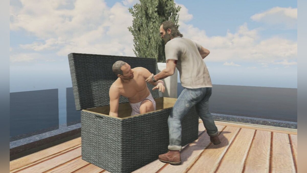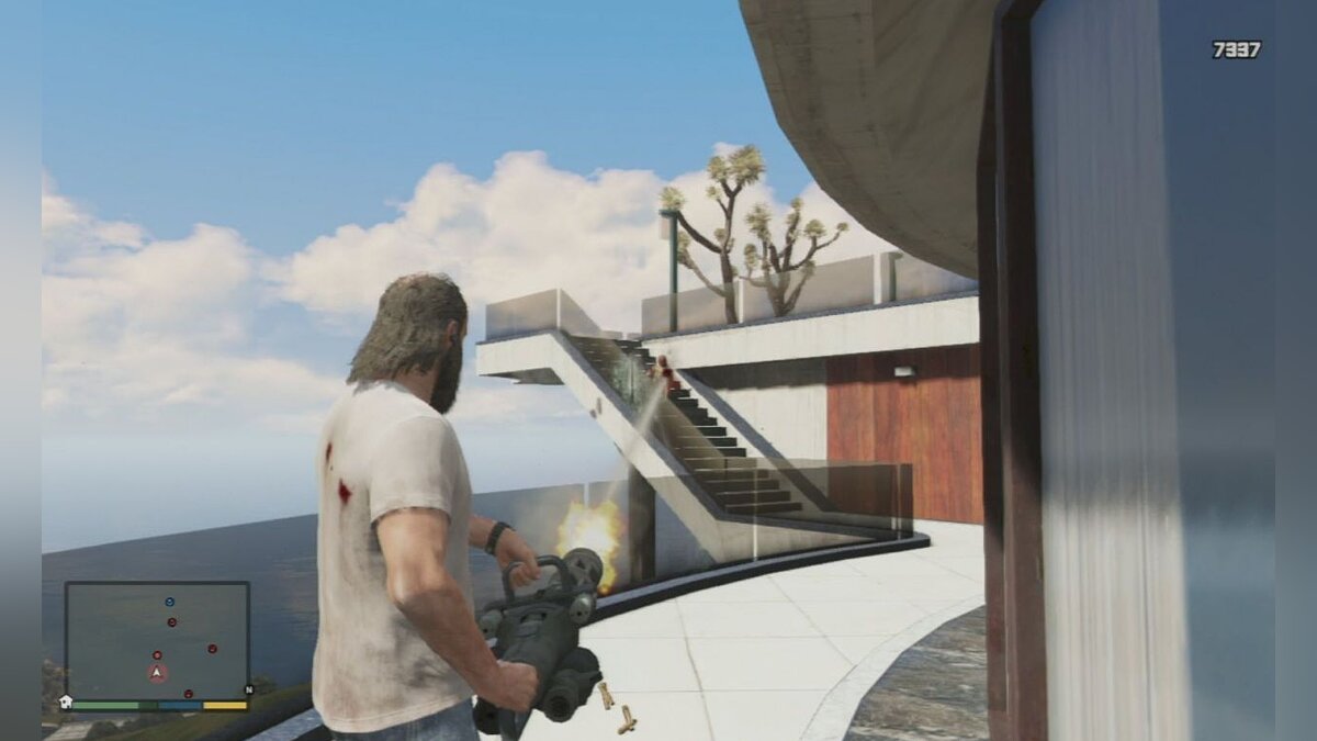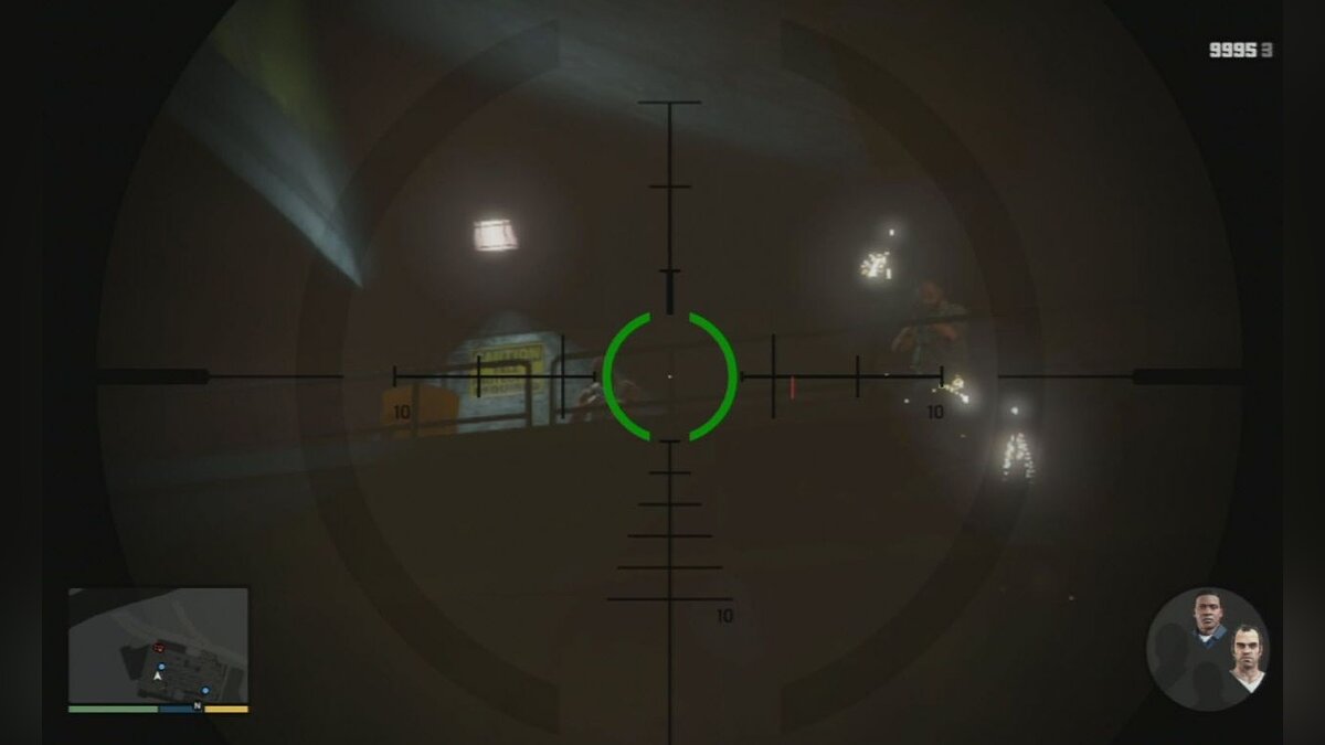 Переключайтесь на Майкла. Убейте бандитов в центре комнаты, пересеките ее и займите позицию рядом с Тревором. Отбейтесь от новой волны нападающих и переключайтесь на Тревора.