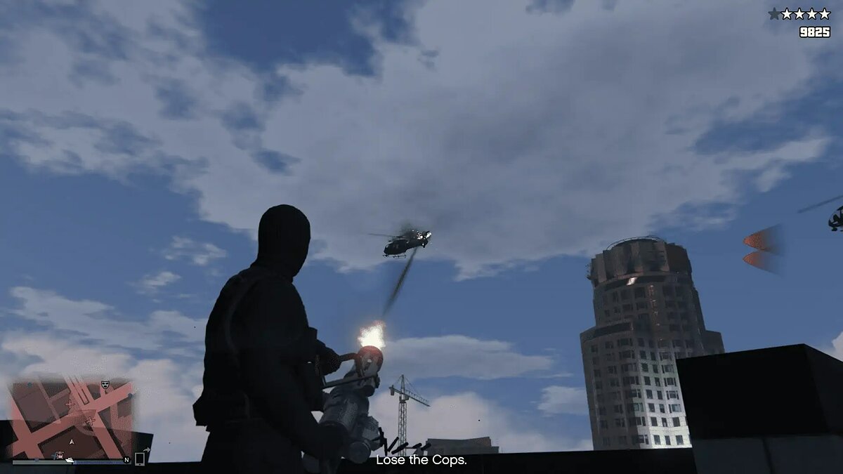 Снаружи вас будут ждать боевые вертолёты. Для их уничтожения можно использовать пусковую установку. Если у вас её нет, стреляйте из минигана. Действуйте из укрытия и, при необходимости, лечитесь.