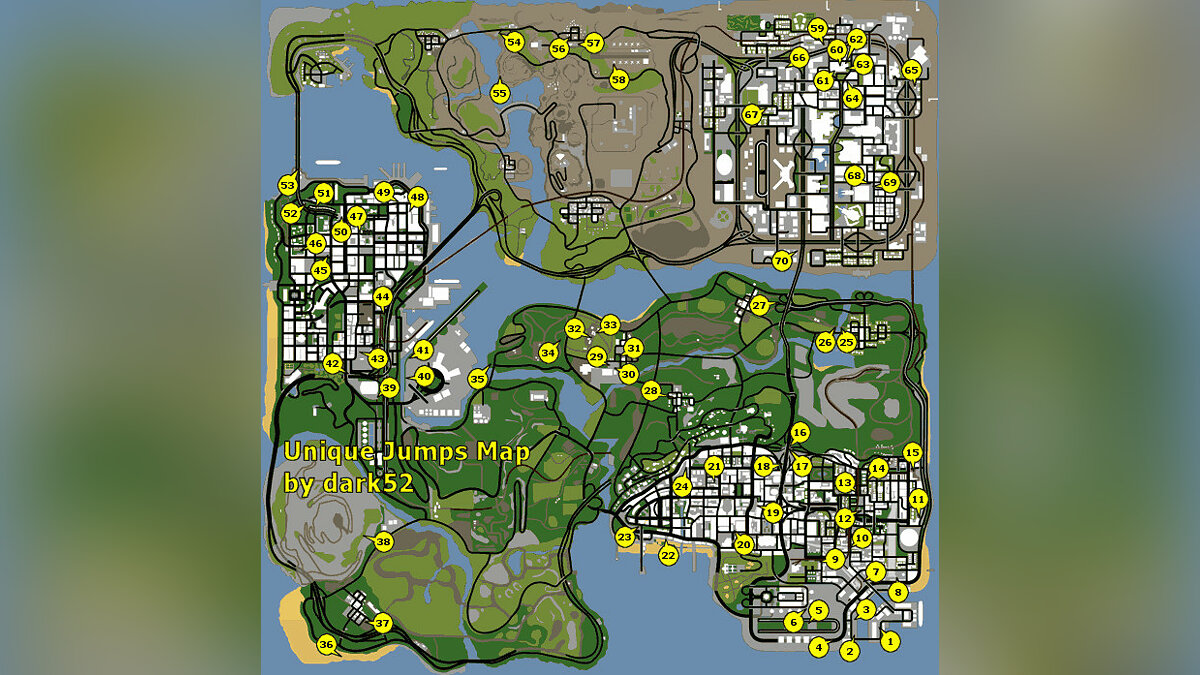 Карта уникальных прыжков GTA San Andreas