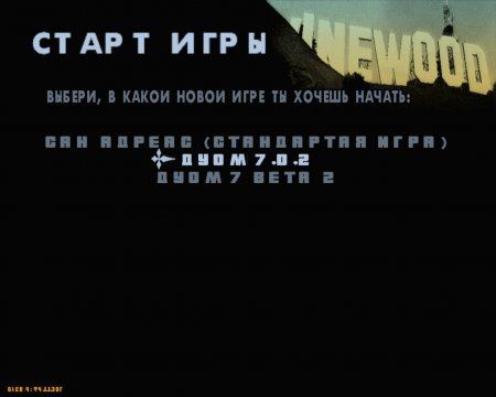 Что бы запустить DYOM, выберите "НОВАЯ ИГРА", а затем "DYOM 7.0.2" (У кого то просто "DESIGN YOUR OWN MISSION")