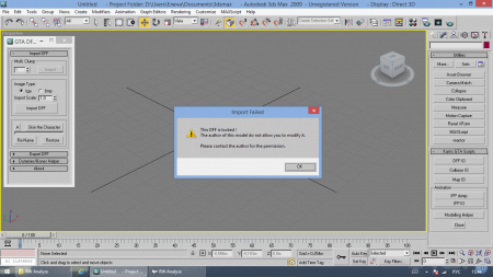 Видите в конце секцию ZModeler Lock? Теперь выделите ее и удалите (Кнопка Del). Теперь ничего не трогайте в файле, просто сохраните и попробуйте загрузить в 3DS Max. Вот какое сообщение я получил при попытке загрузить защищенный файл: