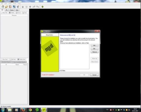 Итак, после того, как вы скачали данные программы, или если они уже у вас есть, мы заходим в Map-Editor. Там есть exe-файл - Med.exe; нажимаем на этот файл, и перед нами вылазит вкладка, в которой нас просят провести путь к игре. Итак, мы нажимаем на Add (Добавить).