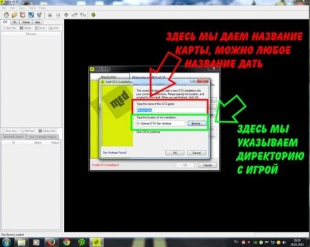 Перед нами вылазит еще одна вкладка, которая предлагает указать директорию с игрой. Она находится во второй строке, а в первой мы даем название карте (Можно любое название дать, какое вам угодно). Мы указываем директорию с игрой и даем название карты.