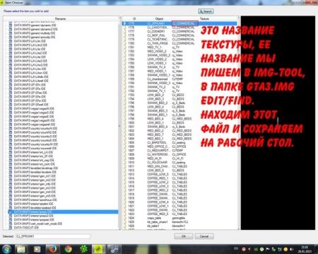 После этого жмем ОК и мы видим 3 графы (ID, Object, Texture). Открываем IMG Tool или Crazy IMG Tool. Находим gta_int.img в папке models, которая находится в папке с игрой.