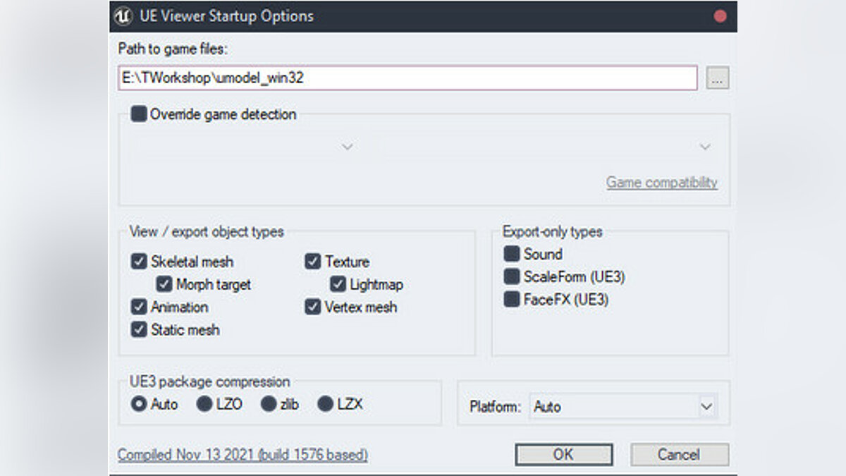 Чтобы что-то извлечь, просто выберите файл в списке и нажмите «Экспорт» (Export). Вам будет предложено указать версию Unreal Engine, выберите 4.26 и нажмите OK. В приведенном ниже примере мы экспортировали файл SM_colt45.uasset, расположенный в Game SanAndreas Weapons. Этот формат можно открыть в Blender и экспортировать в .OBJ.