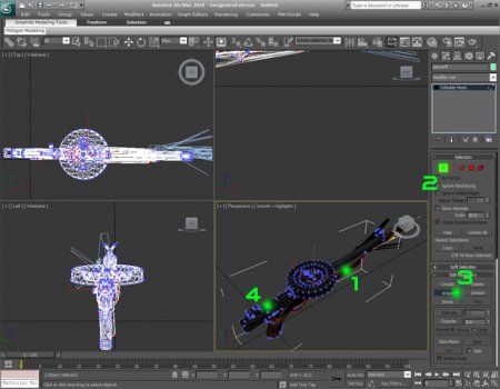 Итак, начнём. Открываем 3ds max и импортируем туда нашу модель. Если она состоит из нескольких частей, то выделяем одну из них, выбираем вторую вкладку, нажимаем Attach и поочереди жмём на другие. Если будет выскакивать окно, то просто жмите OK.