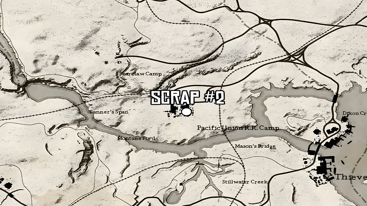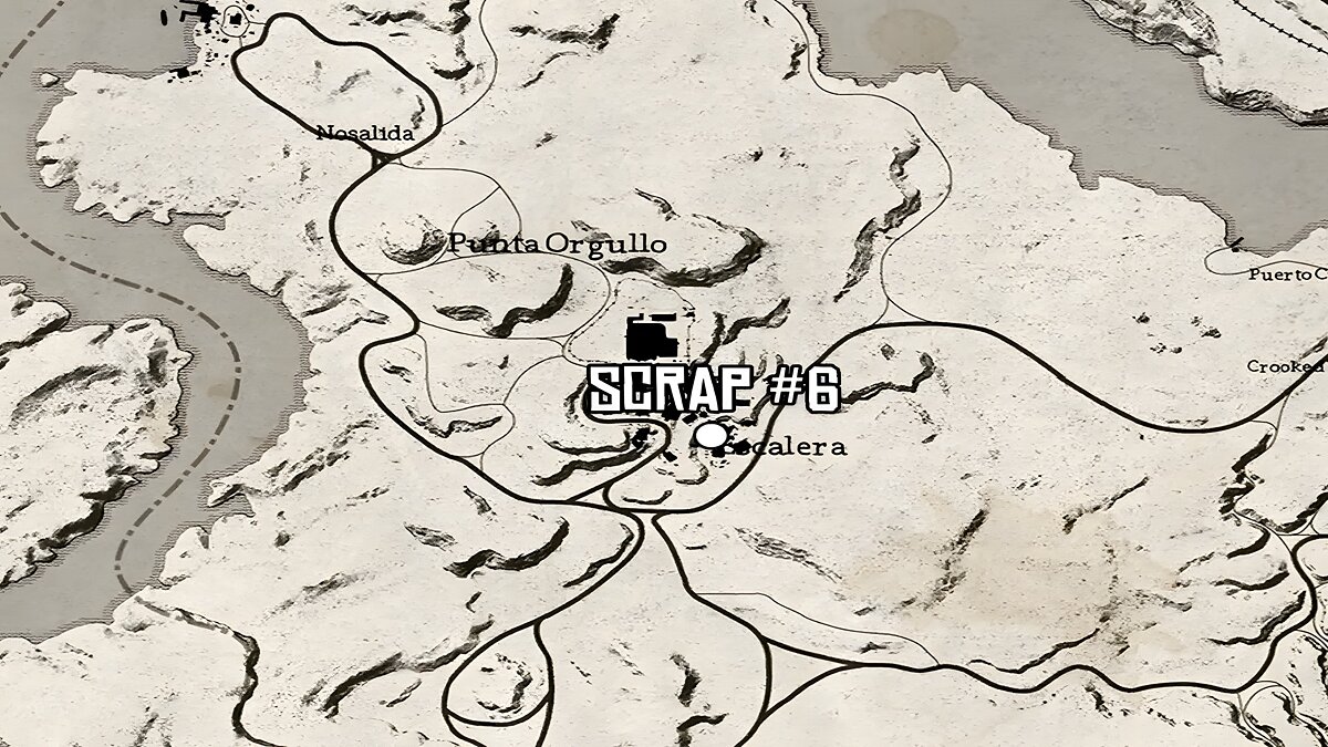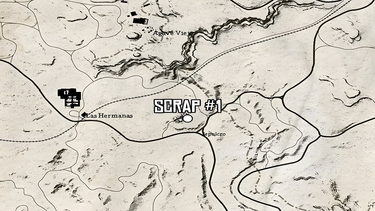 Пятый фрагмент вы получите, защитив поселенцев Мексики от нападения бандитов. Для этого события нет точного сценария, но на карте есть горячая точка, отмеченная ниже, где с большой вероятностью вы сможете наткнуться на бандитов.