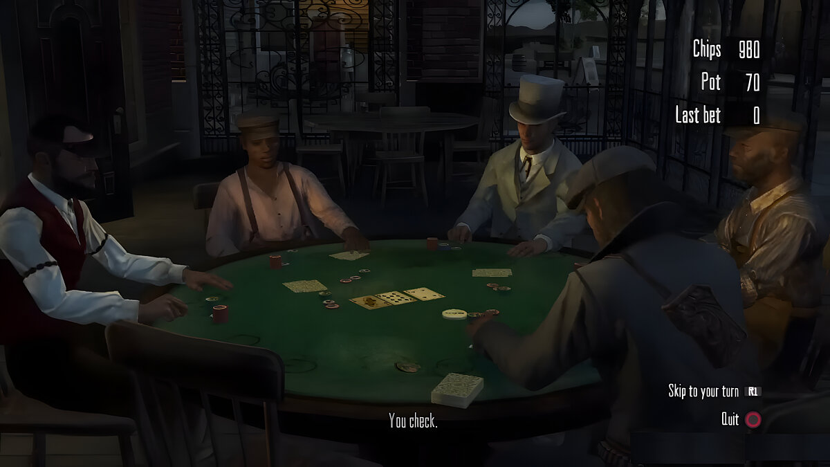 Помимо вас за столом сидит четверо человек, ваша задача — выйти победителем из-за стола.