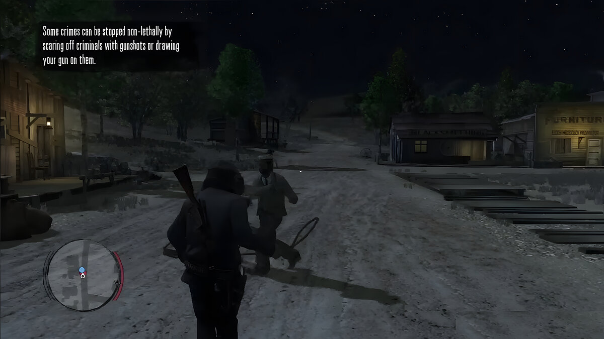 Прибыв, полицейский даст вам поручение следить за городом, оставив в качестве напарника пса. Слева от здания вы увидите, как грабят человека. Вам не нужно убивать грабителя, используйте лассо и свяжите его.